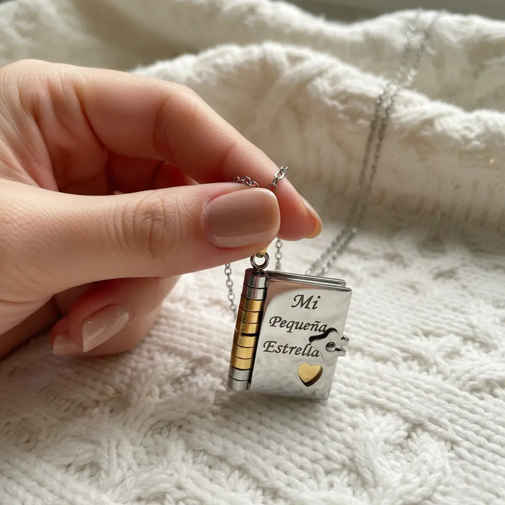 Este pequeño collar en forma de libro guarda un mensaje que atesorará por siempre.