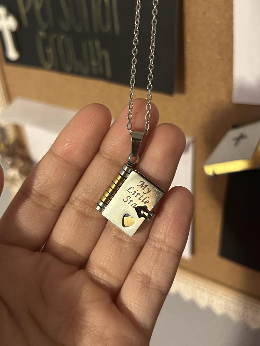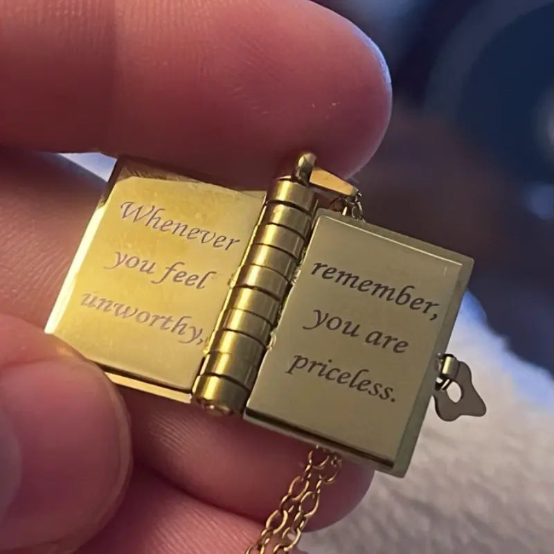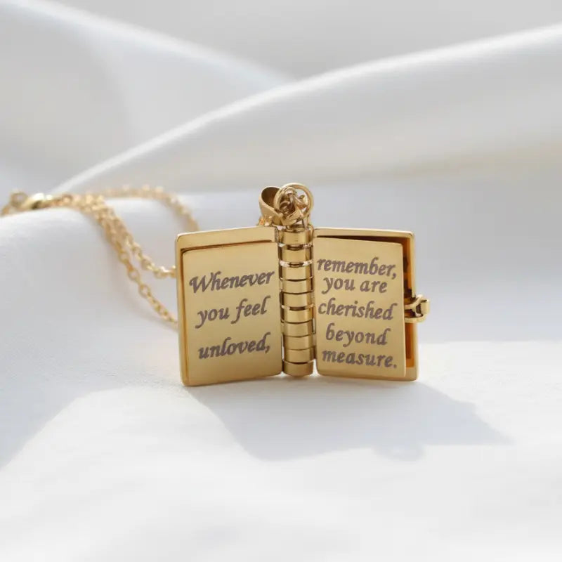 This little book-shaped necklace carries a message sheβll treasure forever.